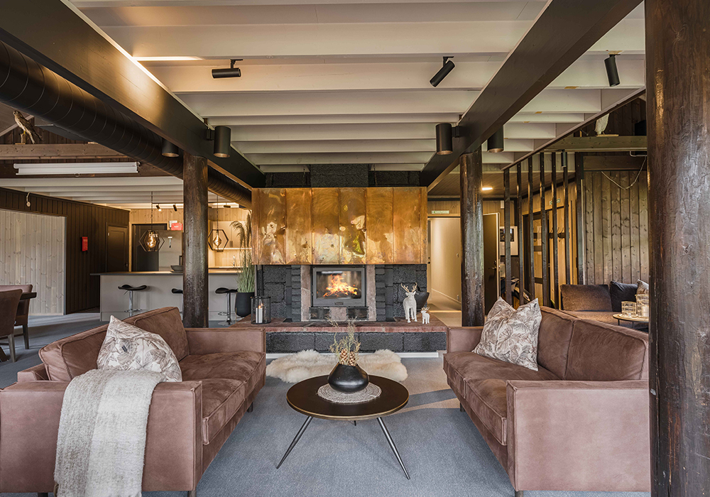 Peisestuen har sitteplasser til rundt 50 personer og kan også leies som selskapslokale.